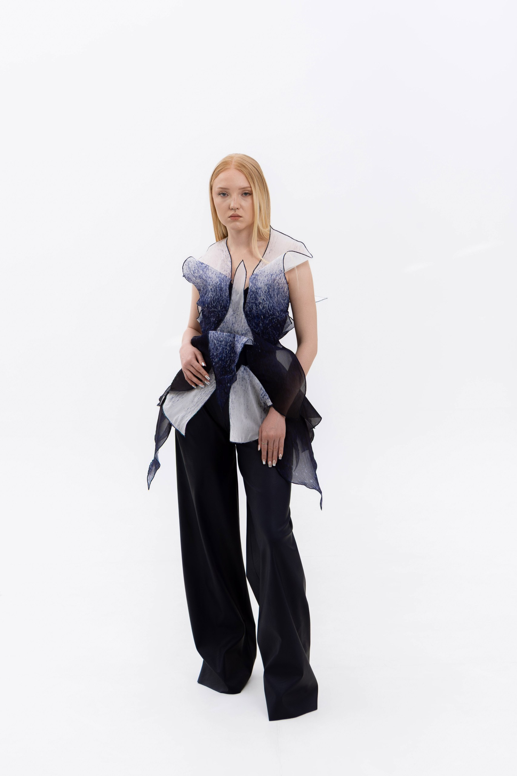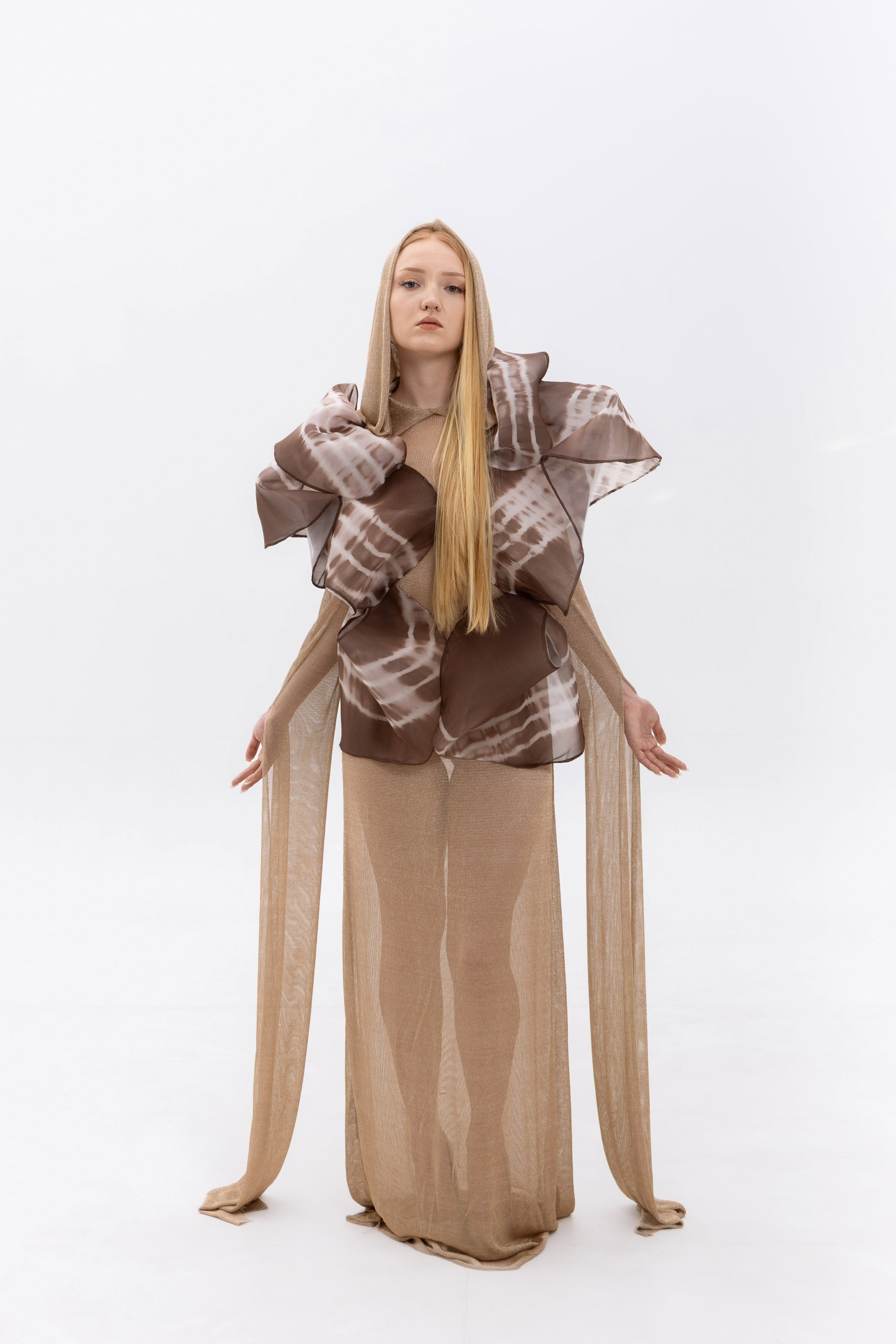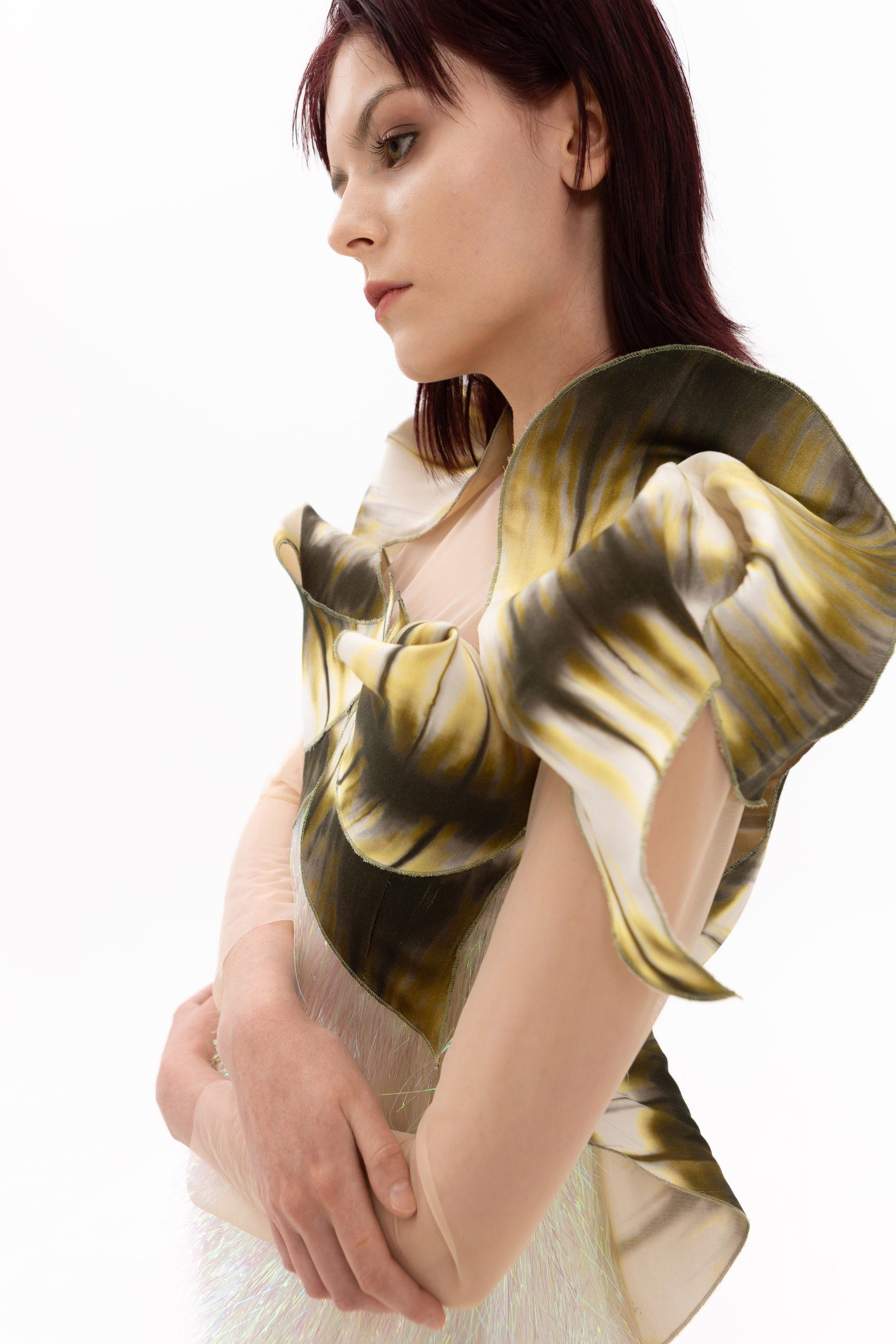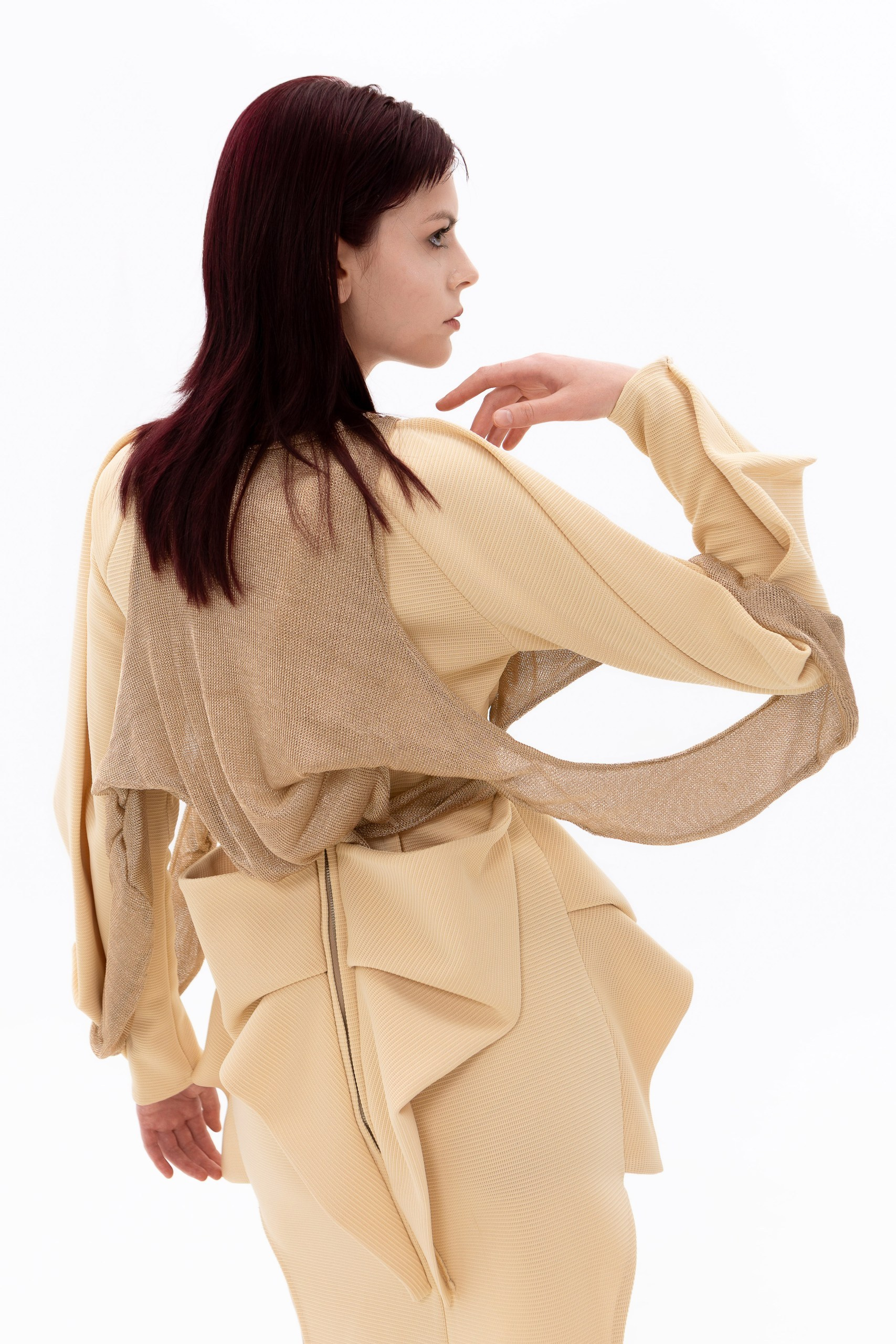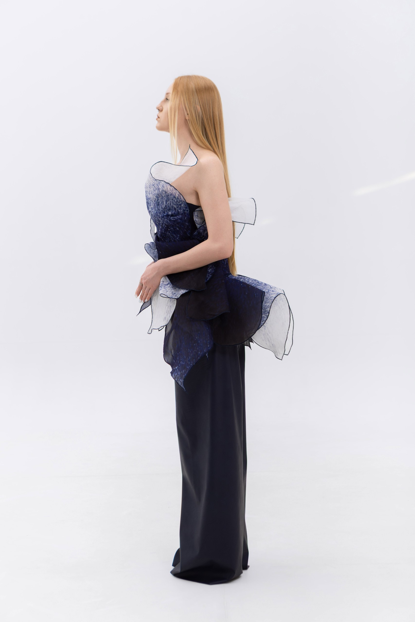 Представленные образы являются лишь частью коллекции «Слияние» и отражают начальный этап исследования темы. Работа над коллекцией будет продолжена, а последующие изделия раскроют концепцию более утрированно и смело.