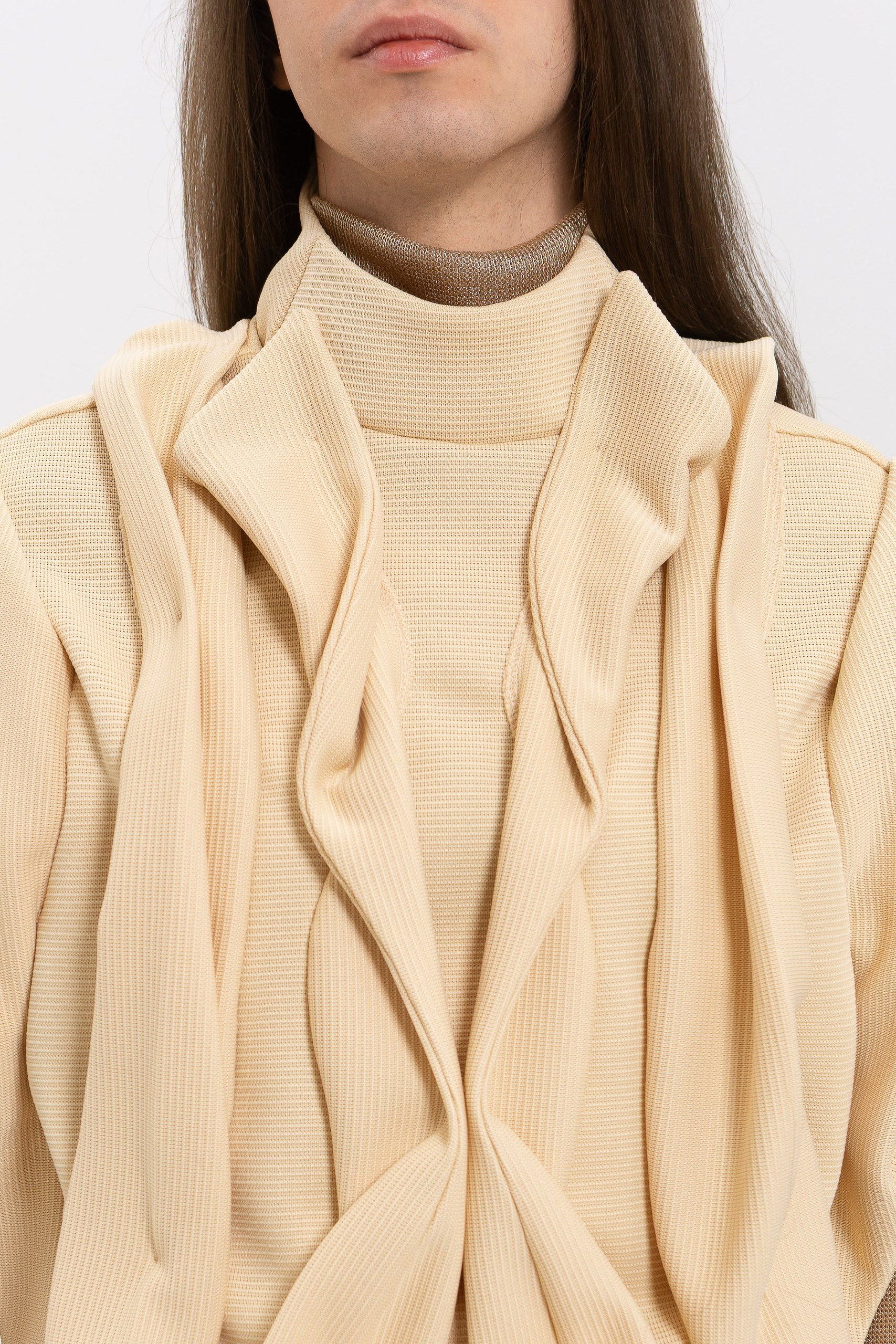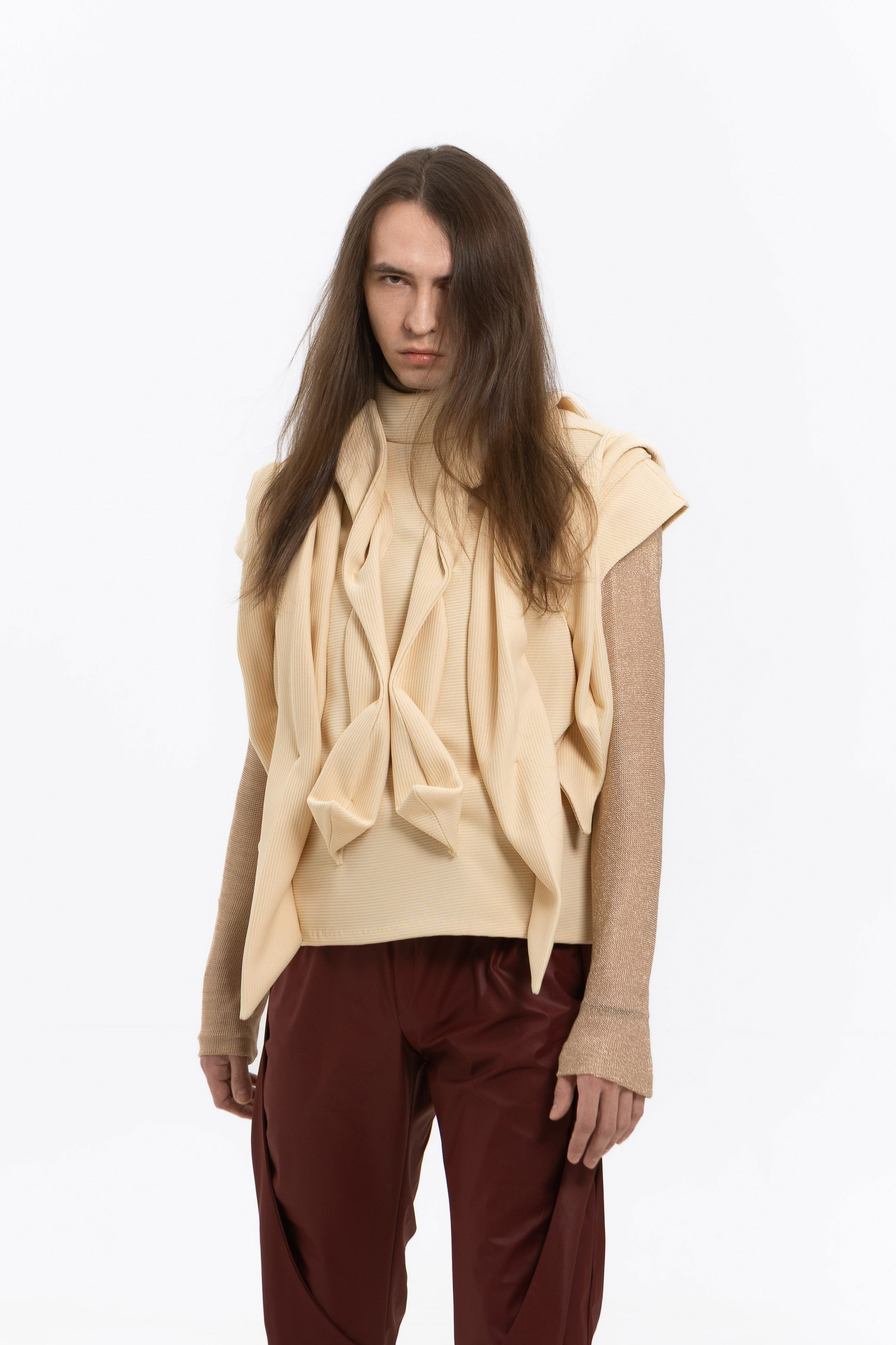 Представленные образы — часть коллекции «Слияние». Последующие изделия будут развивать и углублять эту концепцию, переплетаясь между собой по форме, фактуре и стилистике. Коллекция раскрывается постепенно, как единый живой организм, в котором каждый новый образ усиливает общее высказывание. Коллекция объединяет мужские и женские образы в едином стилистическом поле.